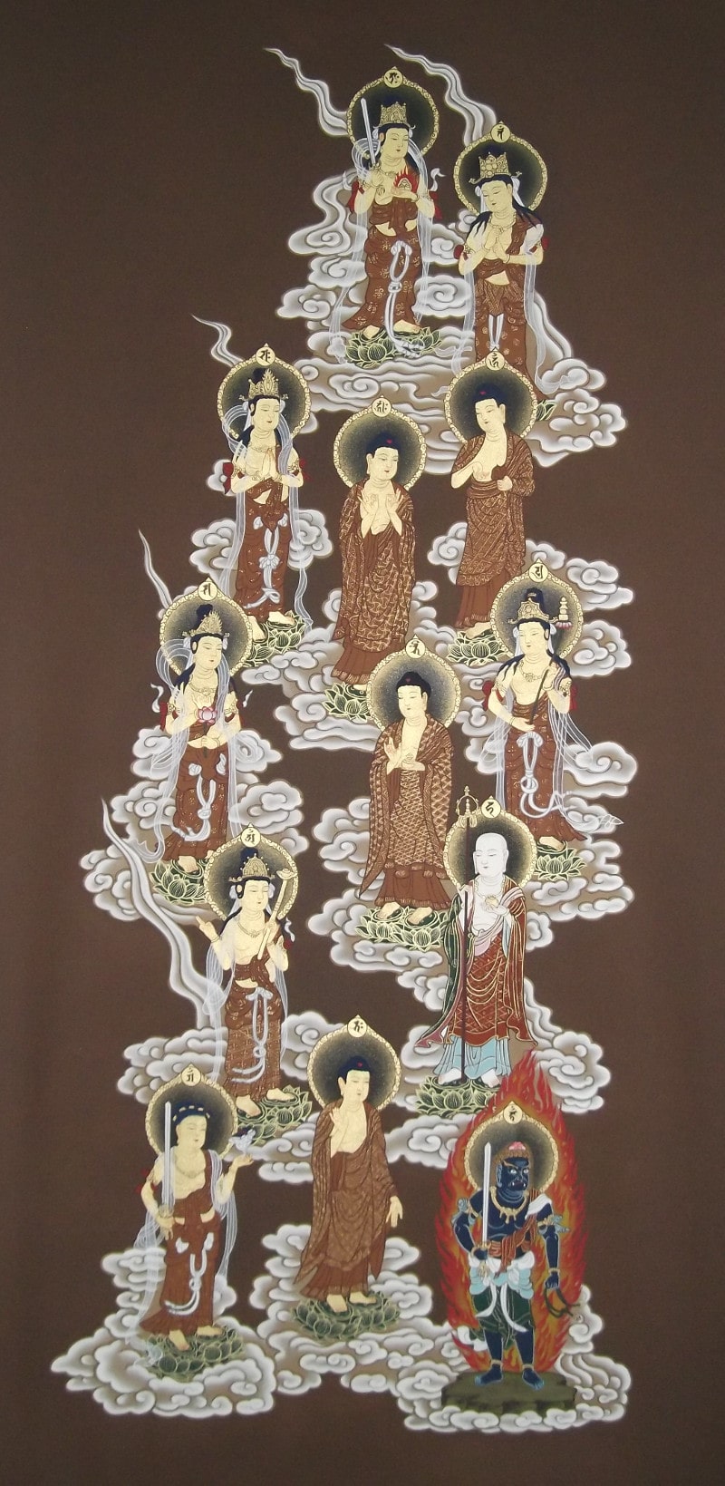 然,乗雲や斜め構図を持つたものではなく、正面蓮華上円相(曼荼羅形式)の密教の十三仏